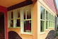 The various ceiling heights help to support both openness and intimacy. The house is detail conscious and highly crafted. Two 2-story galleries on each side of the living area provide natural lighting and ventilation. At the upper levels of each gallery are opposing interior and exterior operable windows to allow ventilation to flow throughout the house