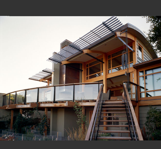 The living arrangement was formed to easily entertain family and friends, as well as be intimate enough for everyday use. The master bedroom suite was relocated away from the view side to the quiet entry courtyard, with it’s water feature and secret garden patio.