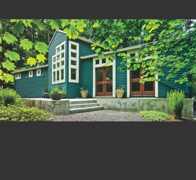 This Northwest contemporary house was designed to suite the owner’s needs while taking into account the view of the woodland site and maintaining privacy. The house has two wings. The larger wing contains living areas and master suite, with great views of the site. The smaller wing incorporates bedrooms with more privacy. A gallery spine bridges the two wings, leading to the great room, and is part of the focal point of the outdoor courtyard.